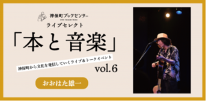 「本と音楽」をテーマに様々なアーティストによる新しい形のイベントとして、アーティストの人生において影響を与えた本や、楽曲に影響を与えた本などのトークに加え、音楽ライブを組み合わせ、神保町ブックセンターでしか体験できない、オリジナルイベントを開催いたします。